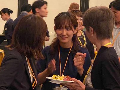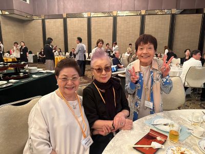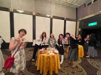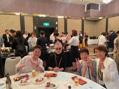 乾杯の音頭は、80歳を迎えた今も硬式テニスの大会に出場されている沢田英子さん(1964年家政科卒)が担当。力強く元気な乾杯に、「さすが中女・至学館!」と会場から声が上がり、一気に和やかな雰囲気に包まれました。