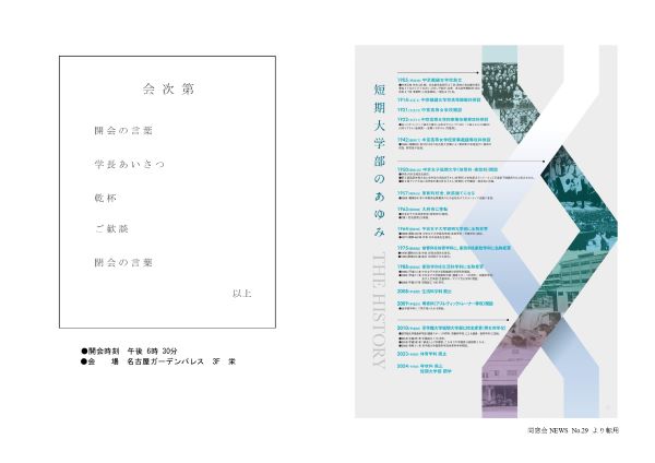 そこで、この長い歴史ある短期大学時代を振り返る場として、また大学から卒業生に感謝をお伝えする機会として「短大閉学セレモニー」を至学館大学の有志教員(有志代表 氏原隆先生)と同窓会で共同開催し企画は同窓会が担当しました。