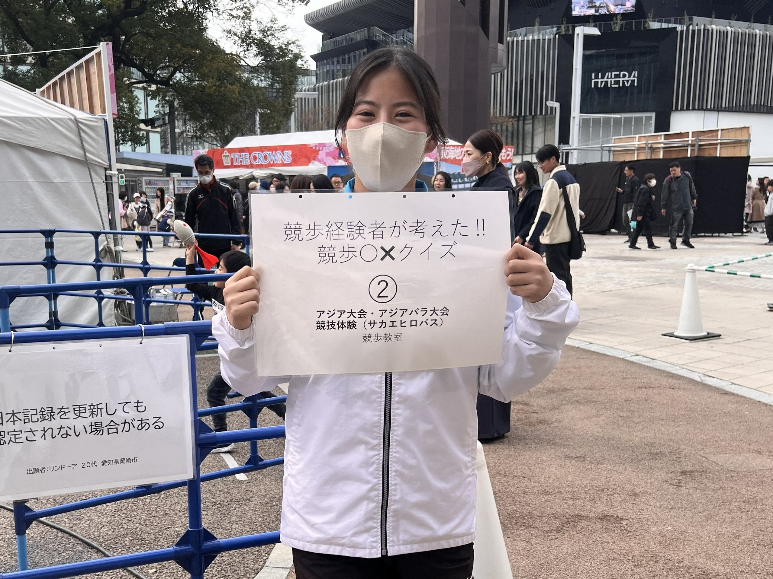 来場された方が熱心に話を聞いてくれて、自分たちが考えた競歩に関わる企画を楽しそうに取り組んでくれたことがとても嬉しかったです。アジア競技大会、アジアパラ競技大会に多くの方が興味を持っていただければ嬉しいです。