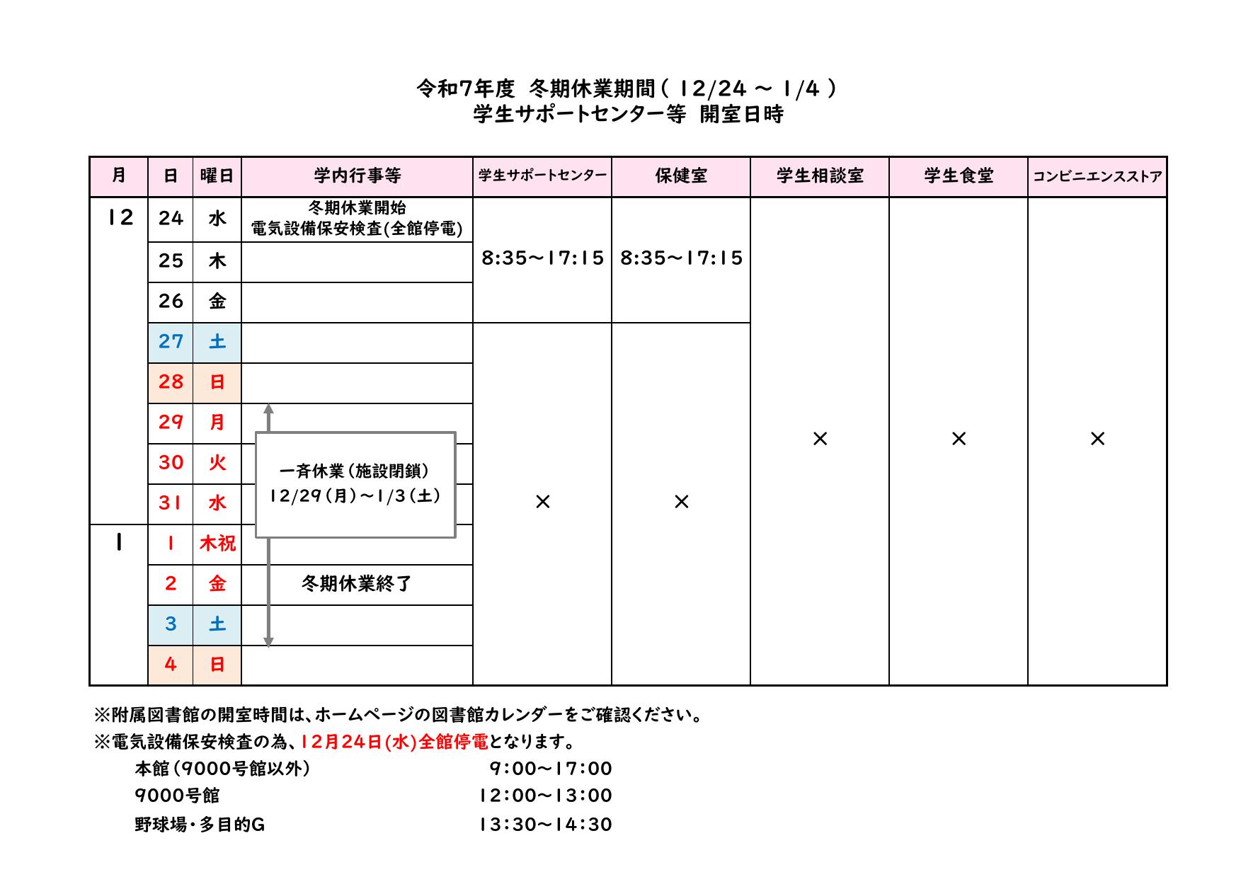 ホーム > ニュース&トピックス > お知らせ > 冬期休業期間中の学生サポートセ...