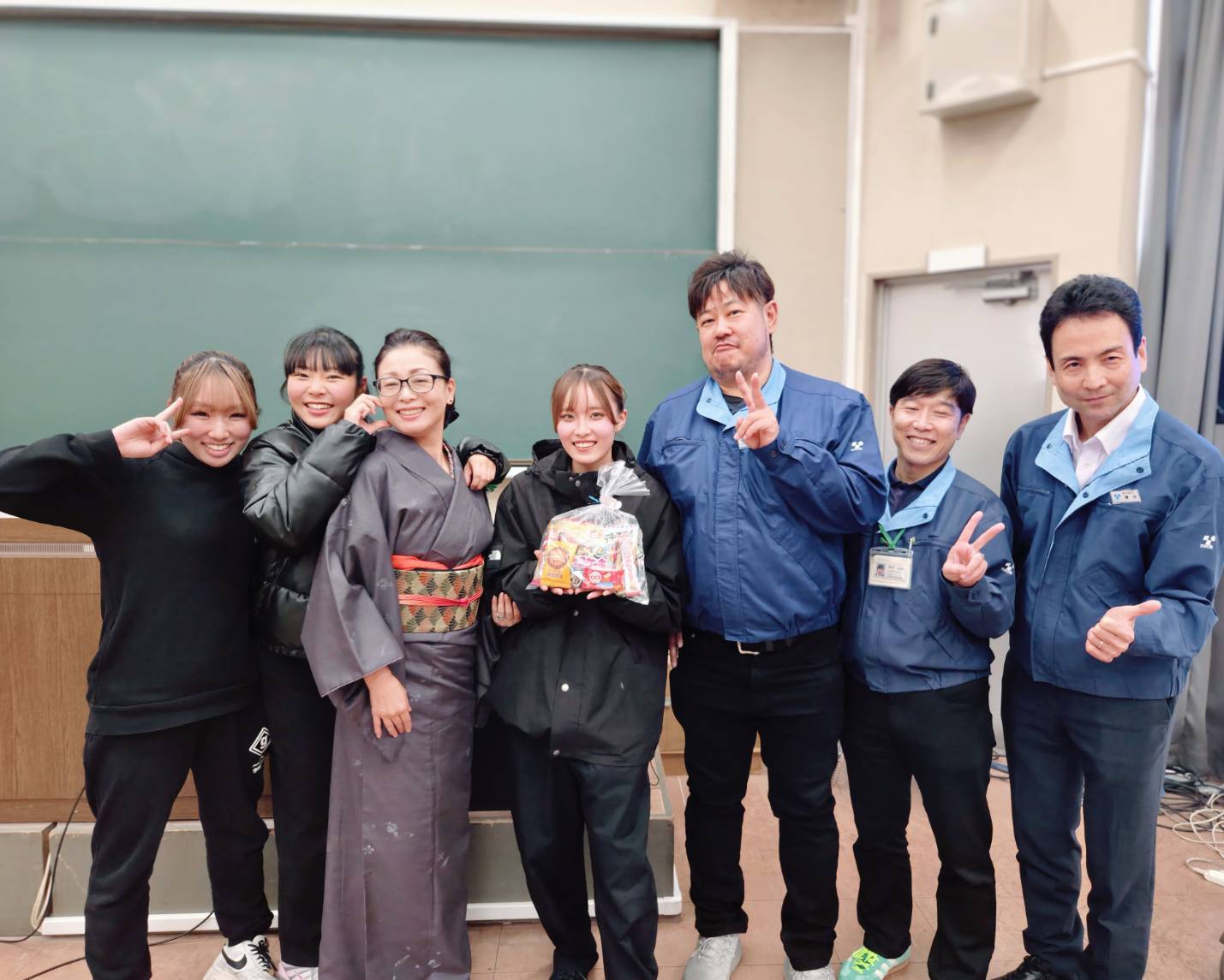 「現代人間論〈人間図鑑〉」(担当:越智久美子准教授)のゲスト講師として、豊田自動織機コンプレッサ事業部より田中 成典氏、水越 貴秀氏等をお招きし、それぞれのライフヒストリーに加え、来年創業100周年を迎える豊田自動織機についてお話しいただきました。なかでも創業者である豊田 佐吉の遺訓である「豊田綱領」についてのご講話は、大変有意義な内容となりました。