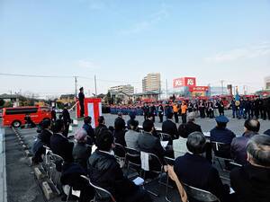 「仲間をまもり隊」(担当:越智久美子准教授)の学生12名と越智久美子准教授が、令和8年大府市消防出初式に参加しました。大府市では毎年1月5日に無火災・無災害を祈願する目的で出初式を開催しています。