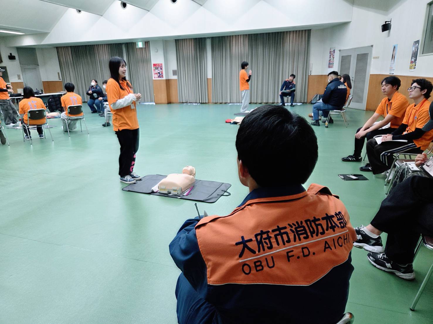 2月12日(木)、13日(金)の2日間、大府市消防本部・消防署にて「応急手当指導員講習」が開催され、本学の「仲間をまもり隊」(担当:越智久美子准教授)から学生14名が受講しました。