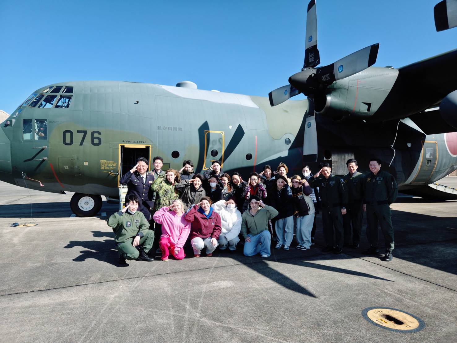 「他者を守るために広く学び、必要な技能を身に付けたい」と、「仲間をまもり隊」(担当:越智久美子准教授)が、航空自衛隊小牧基地にて災害派遣等について学びました。 自衛隊愛知地方協力本部の協力により実現した今回の研修は、1年生から4年生までの学生17名が参加し、近年頻発している自然災害への派遣活動を中心に、様々な見学や体験を行いました。 質疑応答の時間には、参加学生から積極的な質問が相次ぎましたが、隊員の皆様はどのような問いにも丁寧かつ分かりやすくご回答いただきました。